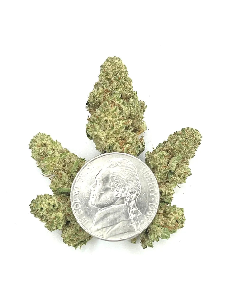 Hand-trimmed, large light green buds with orange hairs and frosty crystals